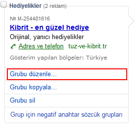 gruptaki birbirinden farklı reklamlara yönelik bir işlem yerine getirmek istiyorsanız birden fazla istenilen reklamı işaretleyin ve İşlemler butonuna tıklayın.