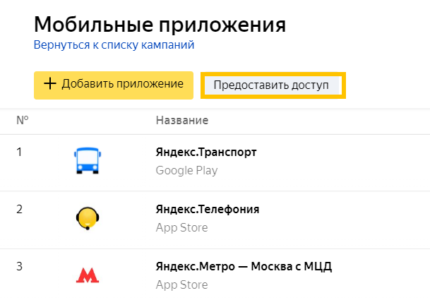 Mobil uygulama bilgilerini Yandex Direct’e ekleyin. Farklı platformların -iOS ve Android- uygulamaları ayrı ayrı eklenir.