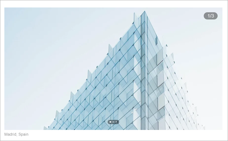Slider 部分是一系列含简要说明的图像。 您可以使用自创图像、库图像或之前使用的图像。 滑动条按顺序一次展示一个图像。 您可以使用滑动条展示分步流程。 滑动条支持的纵横比为 16 : 9 和 1 : 1。