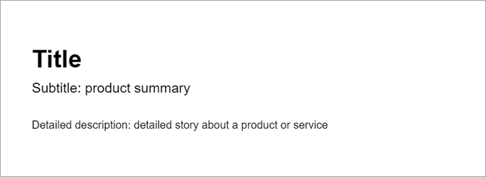 在 Text 部分,详细描述您的产品或服务。 您可以使用不同类型的文本块:通过标题吸引关注;通过副标题传达优惠主旨;通过描述提供产品或服务详细信息。 以下文本格式设置工具可用: