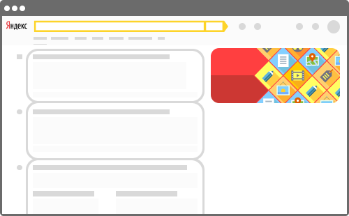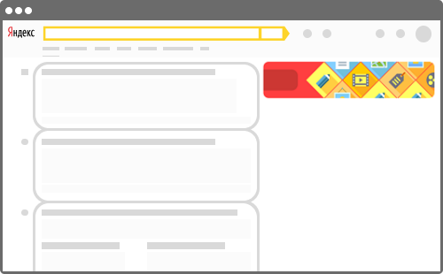 搜索栏下的展示横幅被投放在桌面和移动版的 ya.ru 页面、Yandex Browser 桌面版的新标签页以及 Yandex 网盟网站上。 这样将可以帮助您快速提高品牌知名度和广告记忆率。