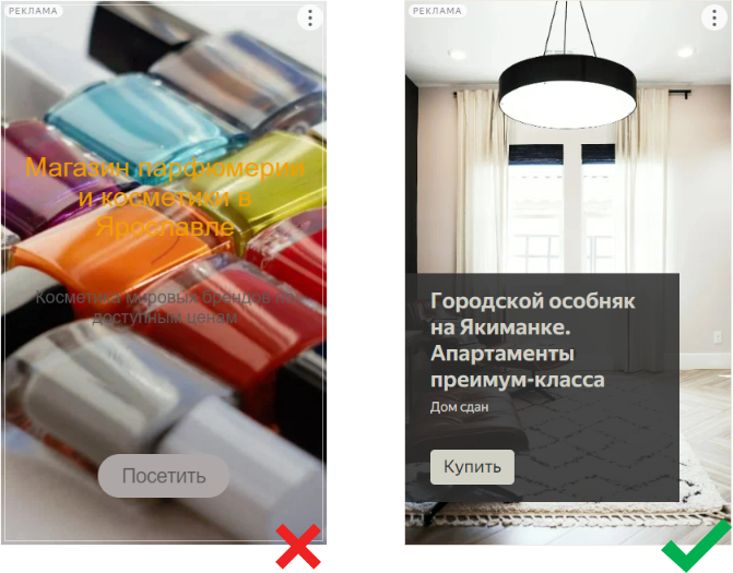 法律和 Yandex 广告投放规则要求提供的所有信息都必须出现在横幅中,包括年龄限制和声明。 并且不得位于横幅的上部。 这些信息必须清晰可见且便于阅读。