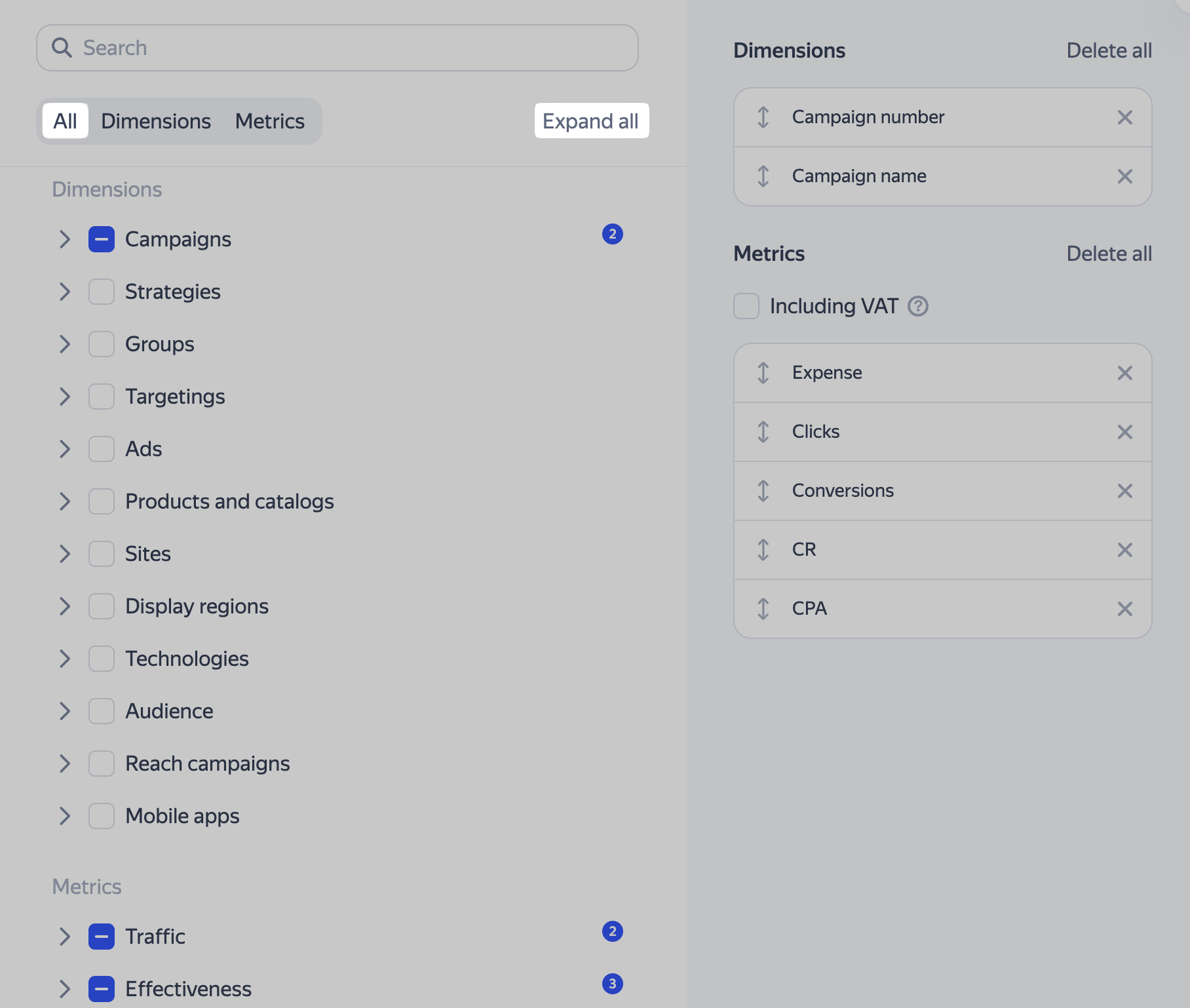 新报表向导提供收入与"转化价值"指标,可帮助您根据业务指标追踪Yandex Direct广告系列的效果。