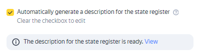 Yandex Direct 使用您所投放广告中的信息(例如标题、文本、图像、视频和 feed 文件)自动为每个广告对象生成描述。 自动生成的描述不一定包含完整准确的信息,因此请务必在将信息发送到 ERIR 之前进行检查。 您可以禁用自动生成,手动编辑整合效果广告系列、移动应用广告、广告系列大师和展示广告系列的描述: