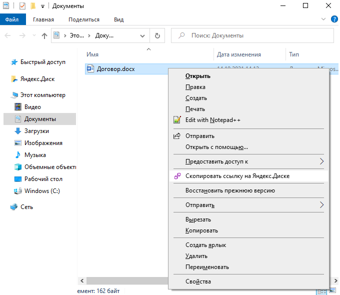 Правой кнопкой мыши нажмите на объект и в контекстном меню выберите Скопировать ссылку на Яндекс Диске.