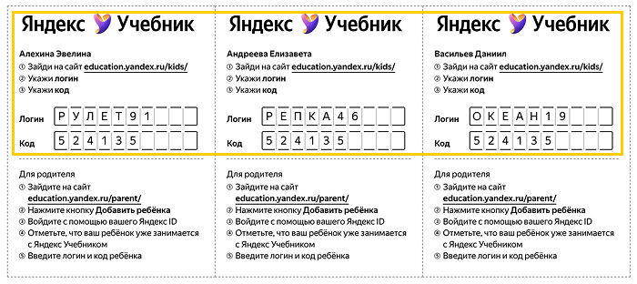 Распечатать инструкцию могут и родители из своего личного кабинета в Учебнике. Подробнее см. в разделе Мои дети Справки Учебника для родителей.