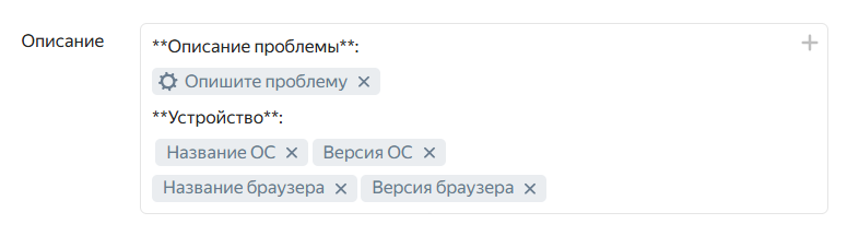 Например, если с помощью формы вы собираете сообщения об ошибках, вы можете добавить в описание задачи сообщение пользователя и техническую информацию.