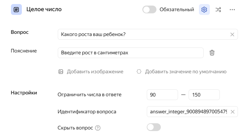 Включите эту опцию, чтобы не отображать вопрос в форме. Скрытые вопросы можно использовать для передачи служебных или вспомогательных параметров.