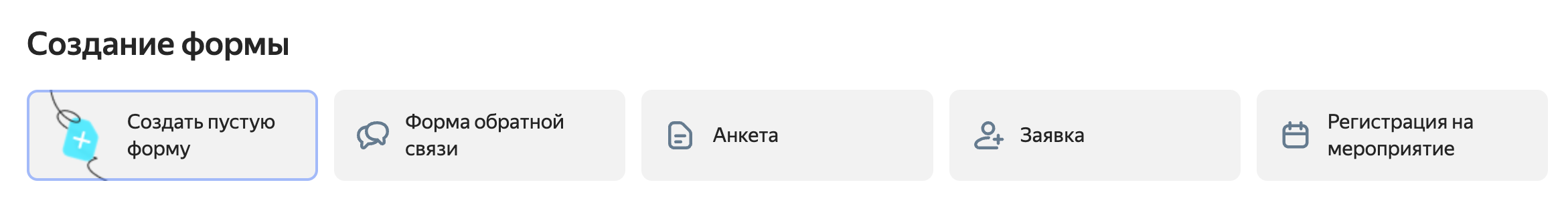 В сервисе есть несколько шаблонов для форм, которые чаще всего создают пользователи. Чтобы создать форму на основе шаблона: