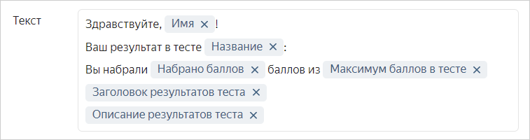 Выберите в списке переменную, которую нужно добавить в поле. Например, в текст письма можно добавить обращение к пользователю по имени или результат теста.