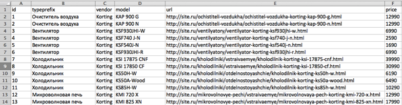 CSV фид — файл в формате CSV, который содержит данные в виде таблицы. Одна строка — это одно товарное предложение (оффер).