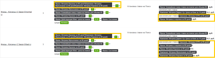 2. Фраза приносит корзины, но в заказы они конвертируются плохо.Что делаем: