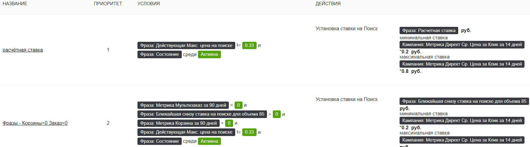 Для совсем неэффективных фраз назначаем техническую ставку 33 коп. с последующей реактивацией через 90 дней.