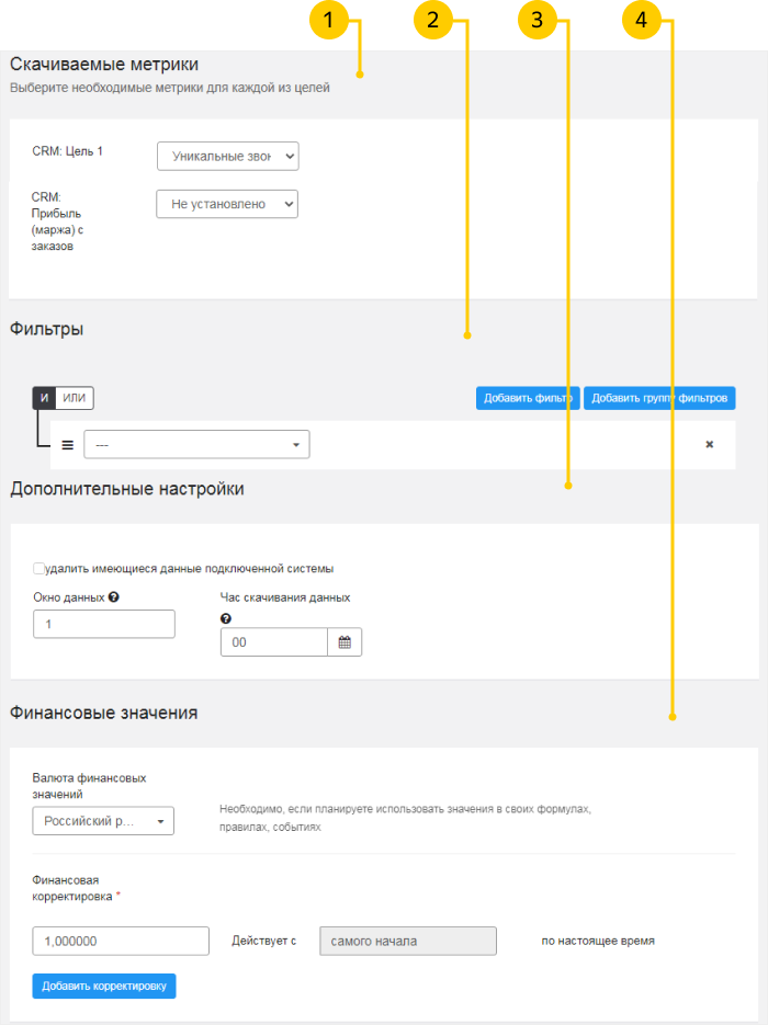В общей сложности вы можете скачать до 20 целей из calltracking сервисов, CRM и других систем.