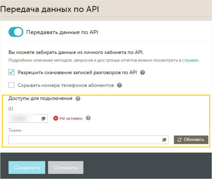 Для подключения Calltouch к К50:Оптимизатору вам необходимо получить идентификатор сайта и токен доступа. Для этого вам необходимо зайти в интерфейс вашего кабинета Calltouch в раздел Настройки → API и скопировать требуемые параметры.