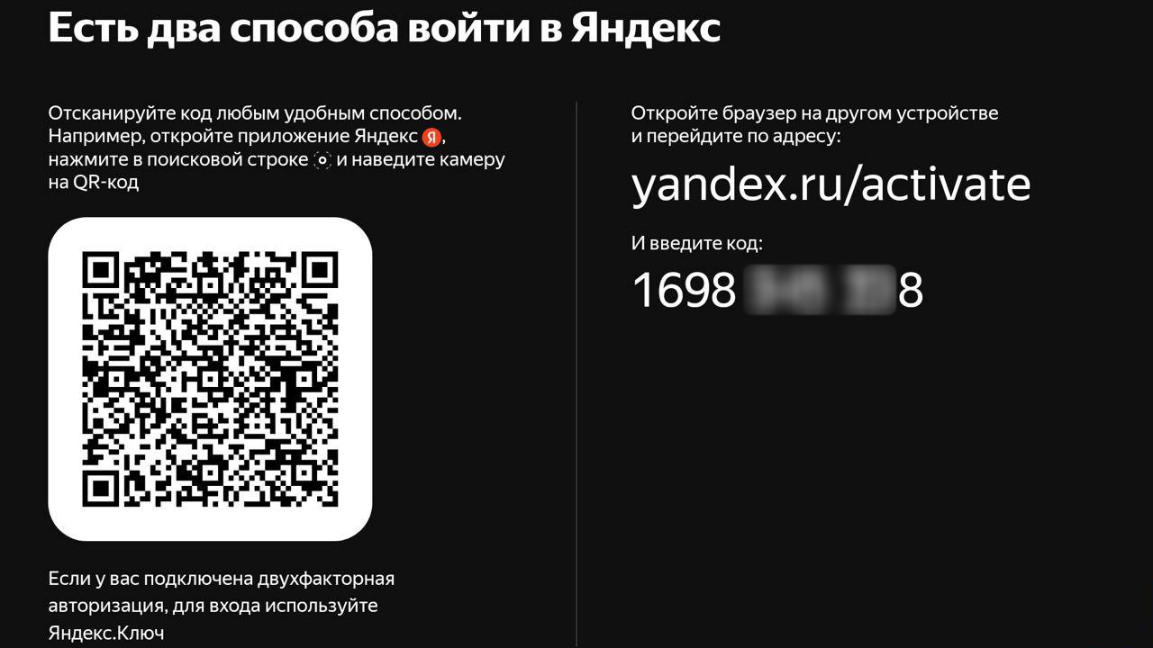 В браузере на компьютере или на телефоне откройте сайт yandex.ru/activate и авторизуйтесь. Если у вас нет аккаунта, зарегистрируйтесь.