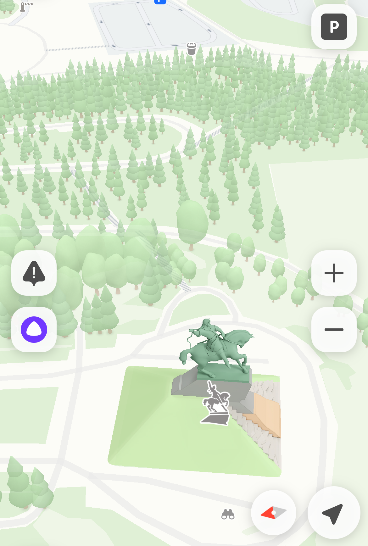In the Yandex Maps app, you can change the map scale using buttons on the map itself, gestures, or your device's volume buttons.