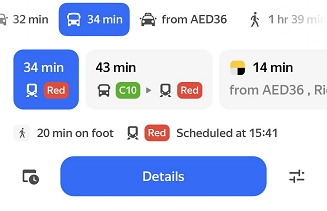 Yandex Maps can build combined routes using multiple types of transport to shorten the travel time.