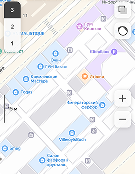 На Яндекс Картах доступны поэтажные схемы некоторых зданий, например крупных торговых центров в Москве.