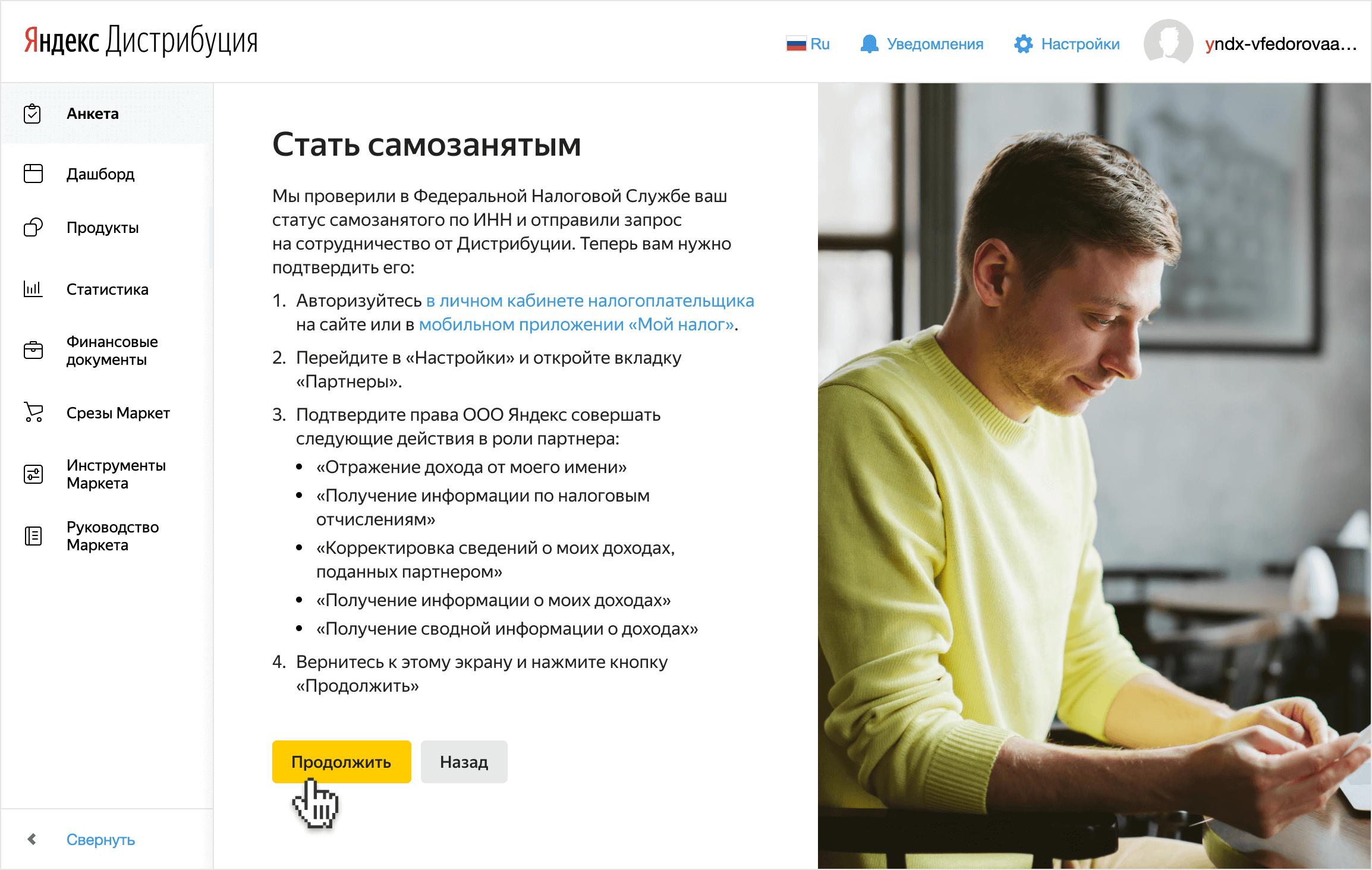 Если вы уже подключены к партнерской сети и хотите продолжить работать в качестве самозанятого: