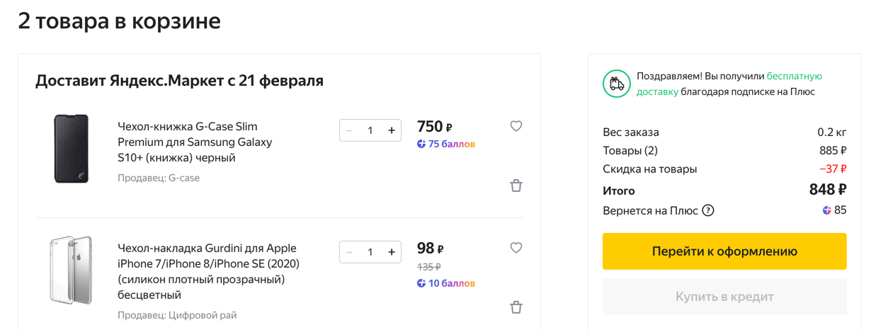 Добавляйте нужные вам товары в корзину на Маркете и оформляйте заказ в один прием. Если у вас возникнут вопросы по доставке, оплате или возврату товаров, Маркет поможет вам решить их.