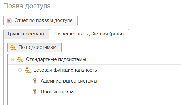 Перейдите на вкладку Разрешенные действия (роли), чтобы проверить наличие полных прав у пользователя.