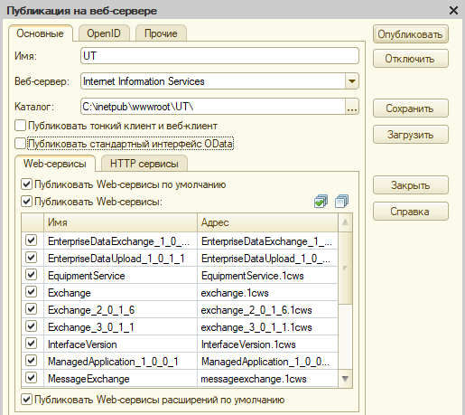 Отключите опции Публиковать тонкий клиент и веб‑клиент и Публиковать стандартный интерфейс OData, если они вам не потребуются. На работу модуля они не влияют.