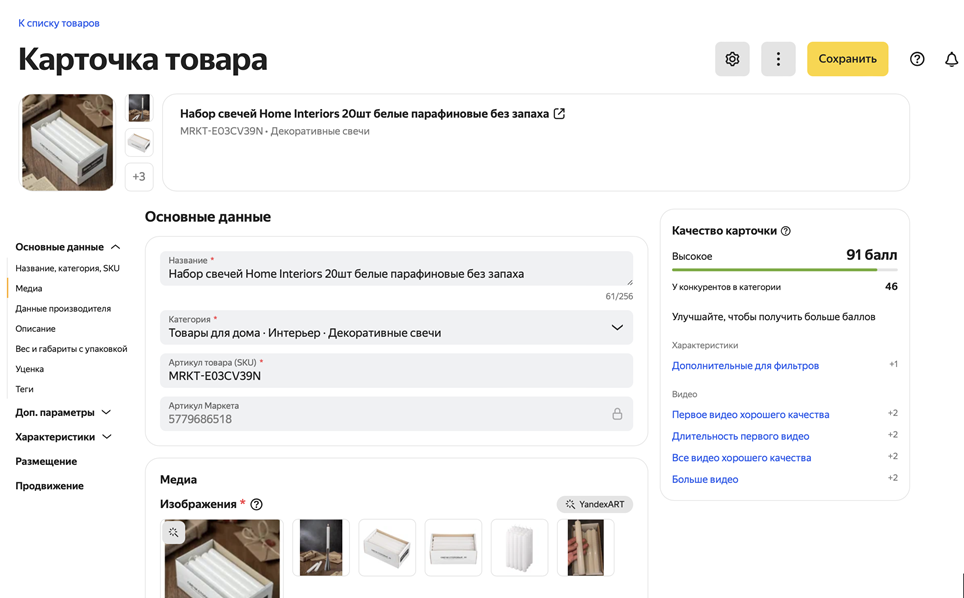 Если вы уже продаете товар на другой площадке, и у вас есть готовая карточка, настройте интеграцию с Маркетом. Перенесется весь контент — и характеристики, и медиа. Как настроить интеграцию