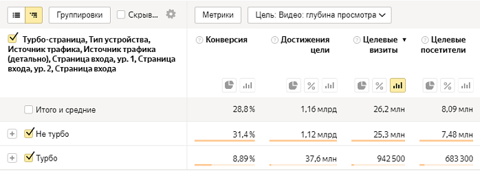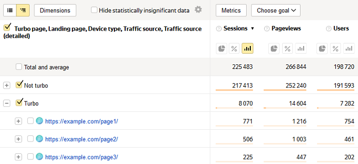 If a third-party site has a link to the page of your site, the user will go to the regular or mobile version, regardless of whether the page has a Turbo version. This session will be included in the “Not Turbo” group for the “Link traffic” source.