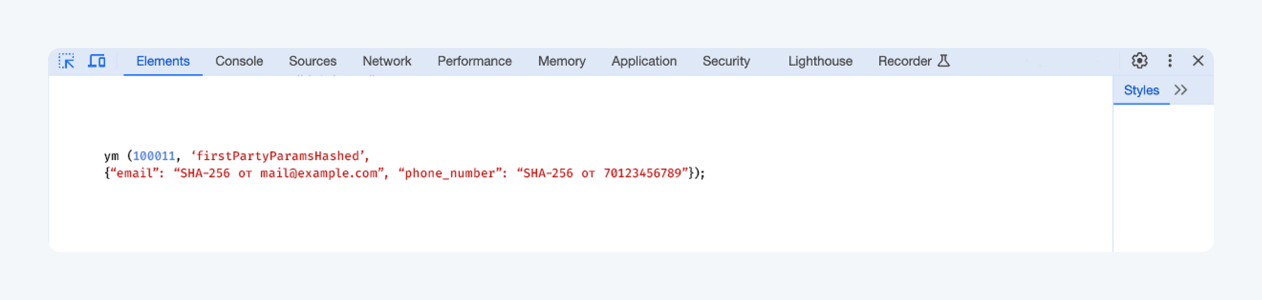 In this case, only the e-mail address and phone number that the user filled out in the form on your site are transmitted to Yandex Metrica in hashed form.