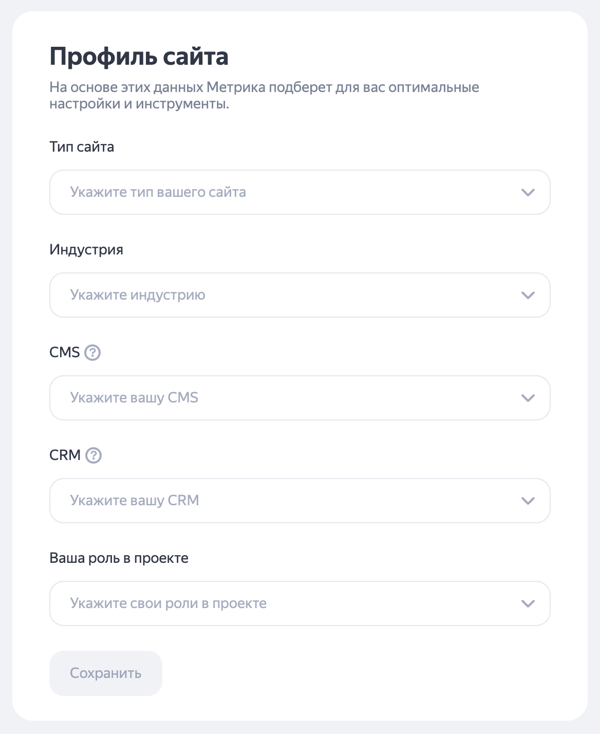 The data you specify is used for interface personalization and to offer you recommendations for configuring analytics tools: