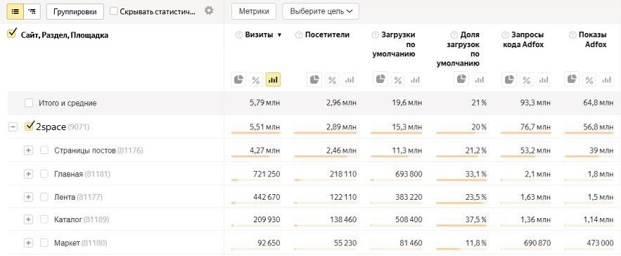 To view the report, enable the display of Adfox reports and specify the Yandex Metrica tag in Adfox.
