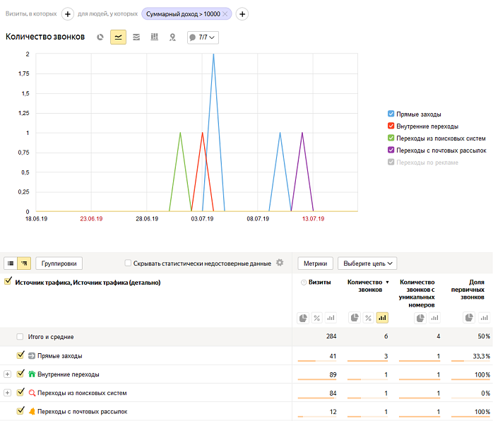 This report helps you find out which traffic sources resulted in calls and determine the most effective ones.