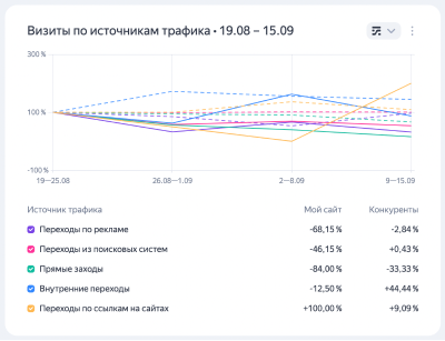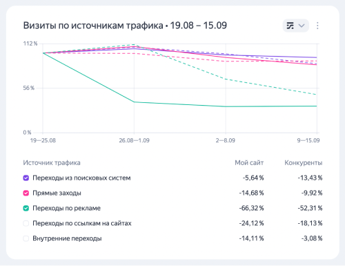 Furthermore, note that competitors were still actively attracting ad traffic in the last week of August, but in the first week of September, this metric began to decline.
