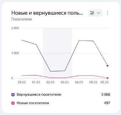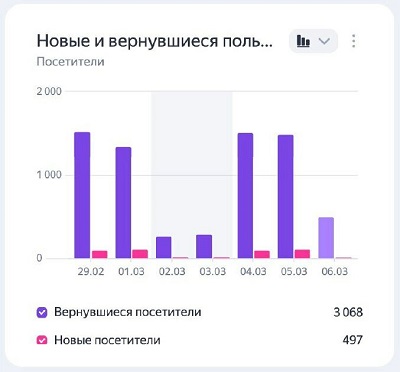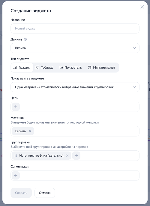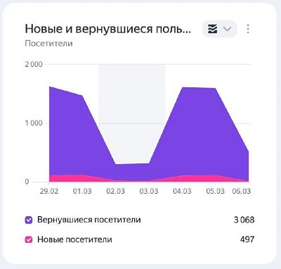 A graphic module that summarizes statistics about the website and its users. Widgets are displayed in the Dashboards section of Yandex Metrica.