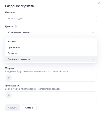 Yandex Metrica has special comparison widgets for analyzing market averages. These widgets have a floating period of the last four full calendar weeks. You can't change the period for market comparison widgets.