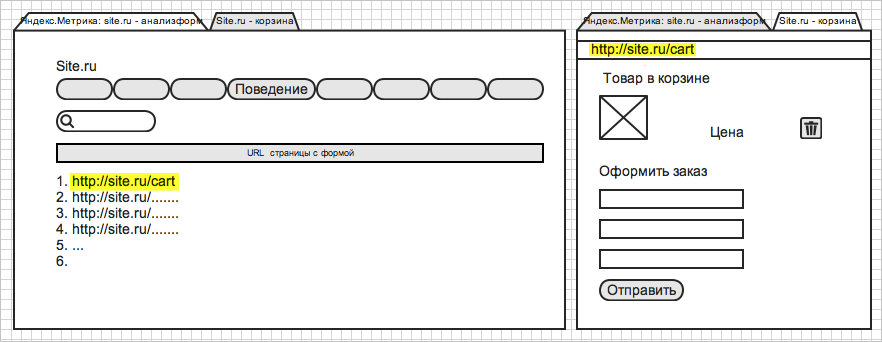 El formulario para realizar pedidos suele aparecer en tiendas en línea solo cuando hay productos en la cesta. Para ver el informe sobre cómo los usuarios interactúan con este formulario, diríjase al sitio de la tienda en su navegador, coloque cualquier artículo en el carrito y luego vaya a la página con el informe del formulario en Yandex Metrica.