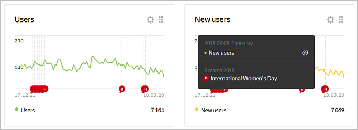 Os feriados nacionais serão mostrados se o Yandex Metrica detectar a região da tag.