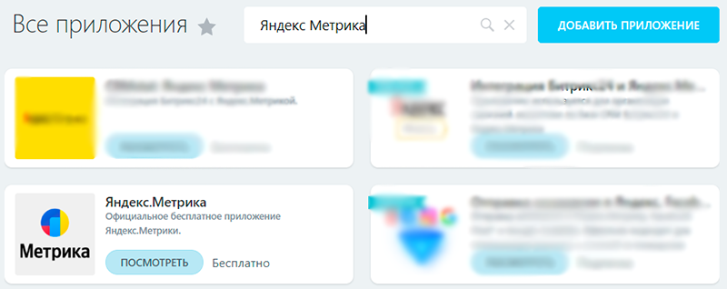 В Маркете приложений Битрикс24 найдите и установите Официальное бесплатное приложение Яндекс Метрики.
