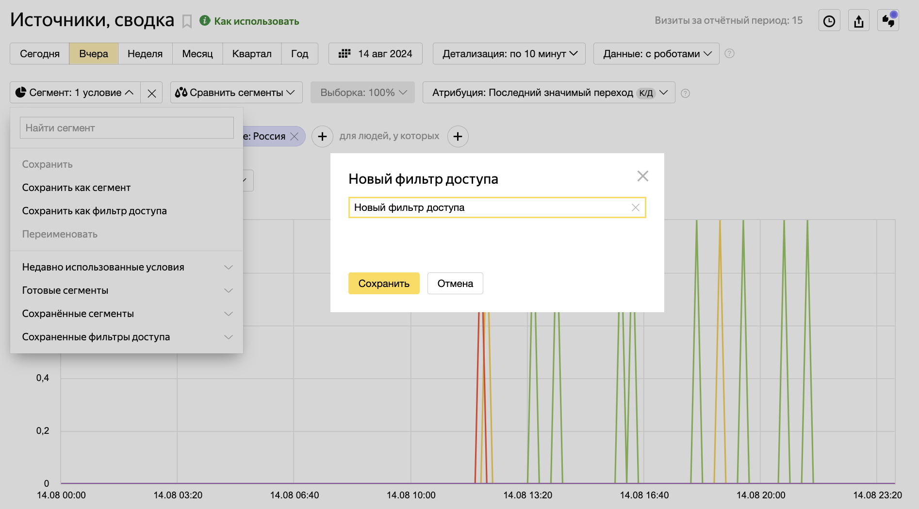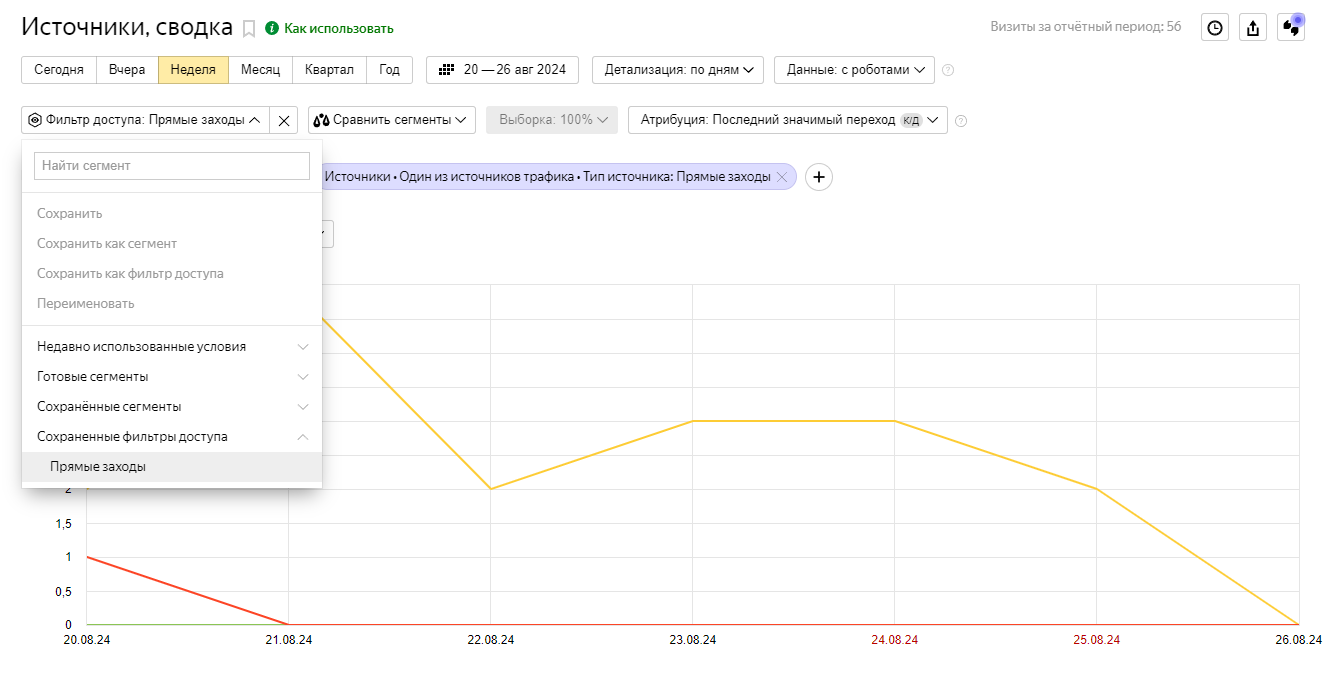 Откройте любой отчет, где есть информация о визитах, например, Источники, сводка.