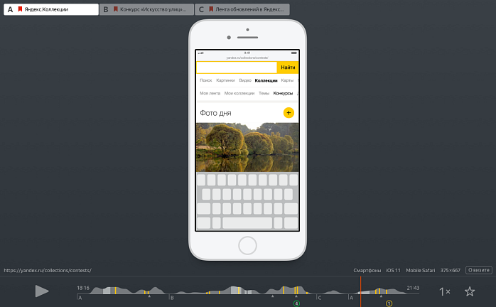 - Вебвизор показывает, как посетитель переключается между вкладками, в которых он открывал ссылки на вашем сайте — как на десктопе, так и на мобильных. Открытые в разных вкладках ссылки отображаются в верхней части плеера.