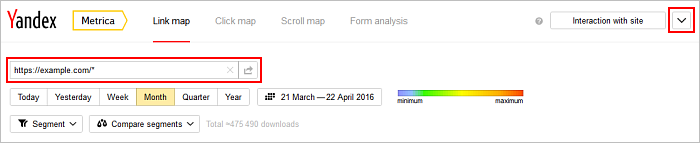 Harita, URL'si belirtilen köşula uygun olan en popüler site sayfasında görüntülenecek. Bağlantı üzerinden yapılan geçişlerin sayısı ya da geçişlerin payı gibi sayısal göstergeler, koşula uygun olan tüm sayfaların toplu verilerini yansıtacak.