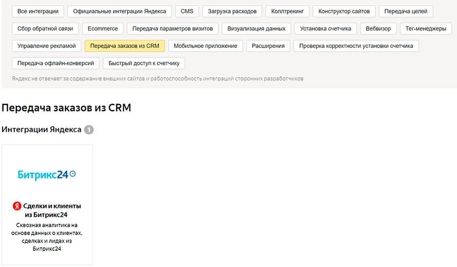 Bitrix24 Uygulama Marketi’nde Yandex Metrica’nın Resmi Ücretsiz Uygulamasını bulun ve yükleyin.