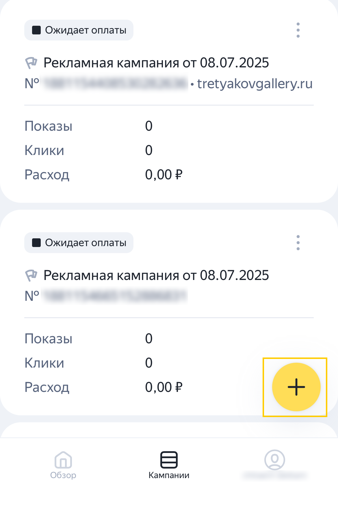 Вы можете создать кампанию в Простом старте с показами на Россию, Беларусь и Казахстан. Для этого перейдите на экран Кампании, нажмите на в правом нижнем углу и выберите Простой старт.