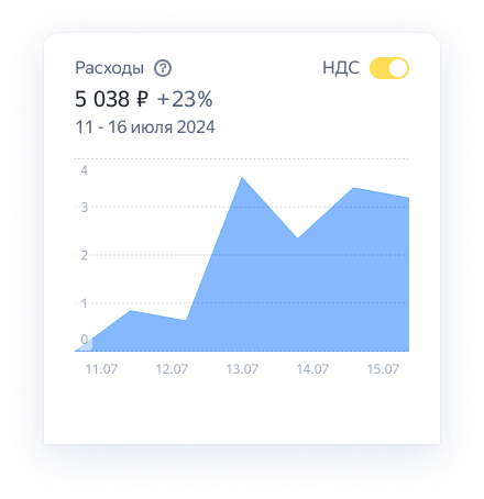Для метрики «Расход» в шторке доступна опция НДС. Если опция включена, график будет построен с учетом НДС.