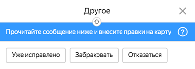 Проставлять сообщению о неточности ту или иную резолюцию следует только тогда, когда вы абсолютно в ней уверены. Если полноценно разобраться в самом сообщении или в ситуации на местности не получилось — откажитесь от обработки сообщения. Его обязательно разберёт другой народный картограф или сотрудник.