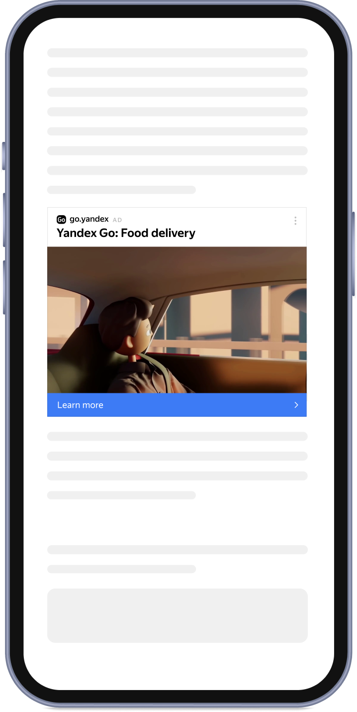 A video ad unit may contain additional elements defined by the advertiser: a header, a logo, a CTA button, a domain, or text. They help increase the unit conversion rate.