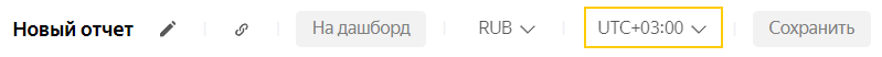 Заданный часовой пояс отобразится в названии отчета на дашборде и, если пояс отчета отличается от текущего, в конструкторе отчетов.