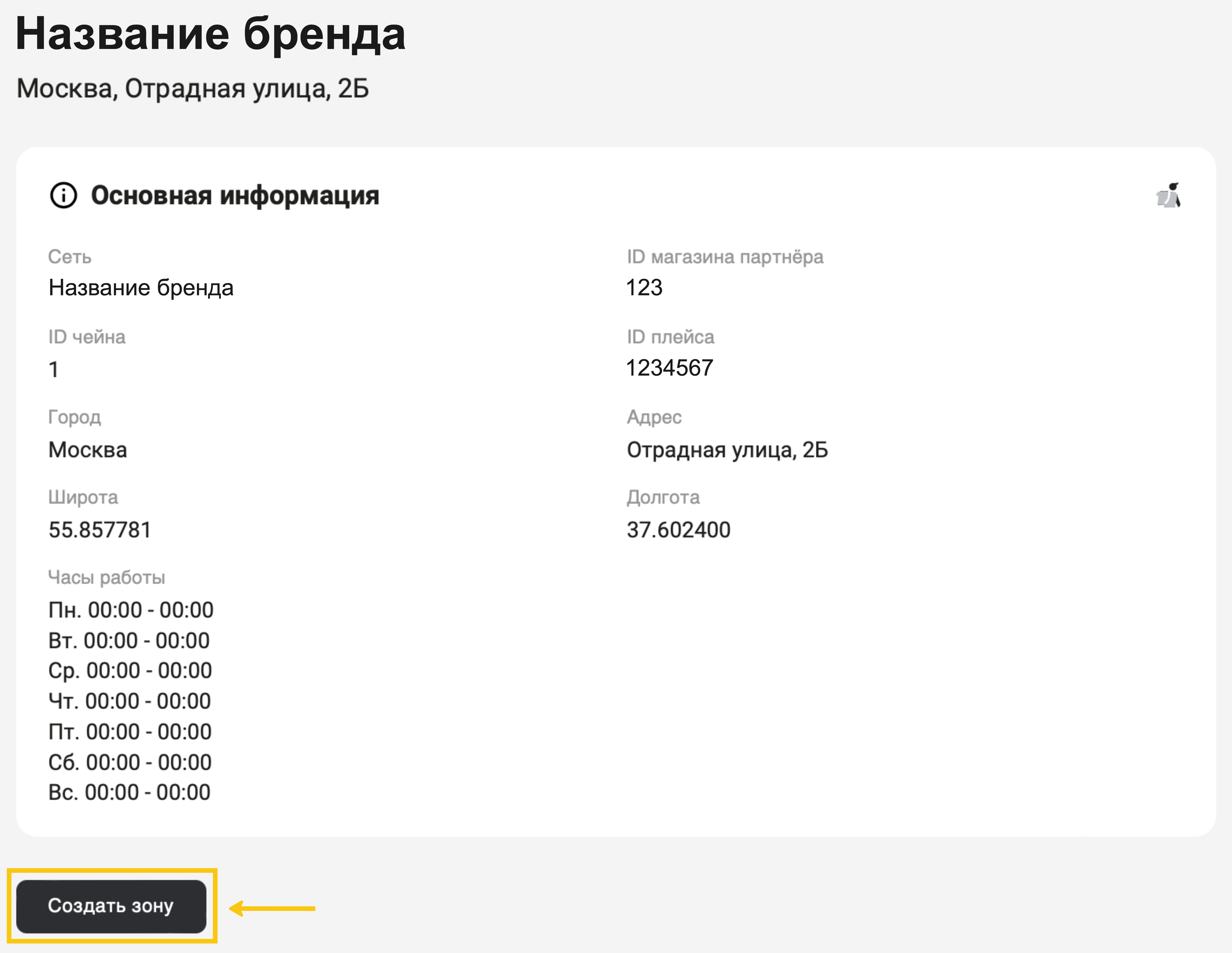 - В карточке магазина в разделе зон доставки в верхнем правом углу нажмите