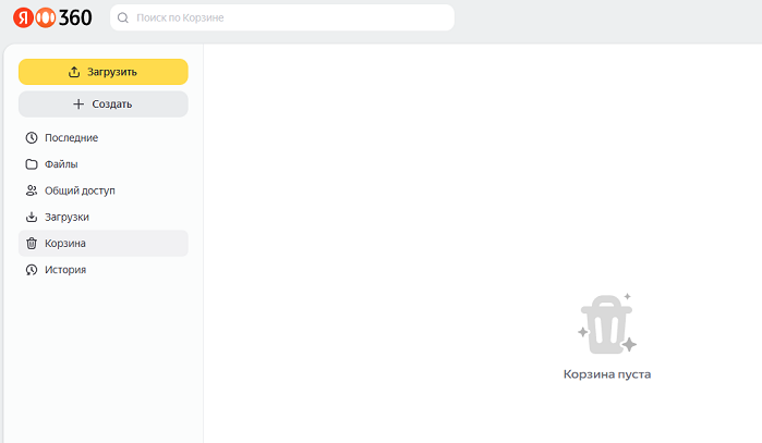 На вкладке Корзина отображаются все удаленные папки и файлы.